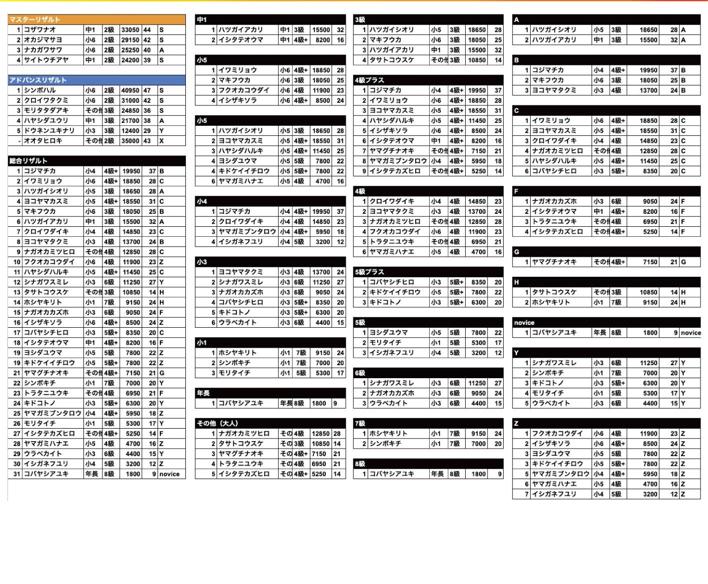 さて、一般クラスの結果発表です!!