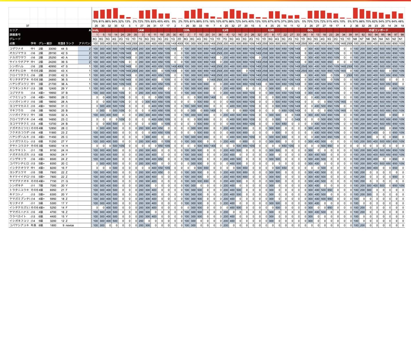 以下学年、グレード、のぼコンランクでの各1位の選手です。