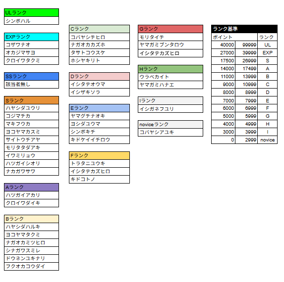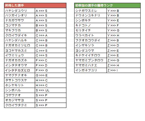 *ランクSS〜Iについては前回大会の結果をもとに認定されるランクです。