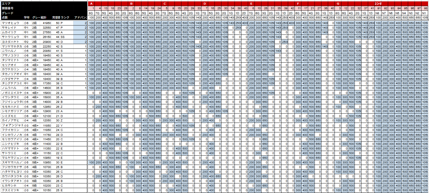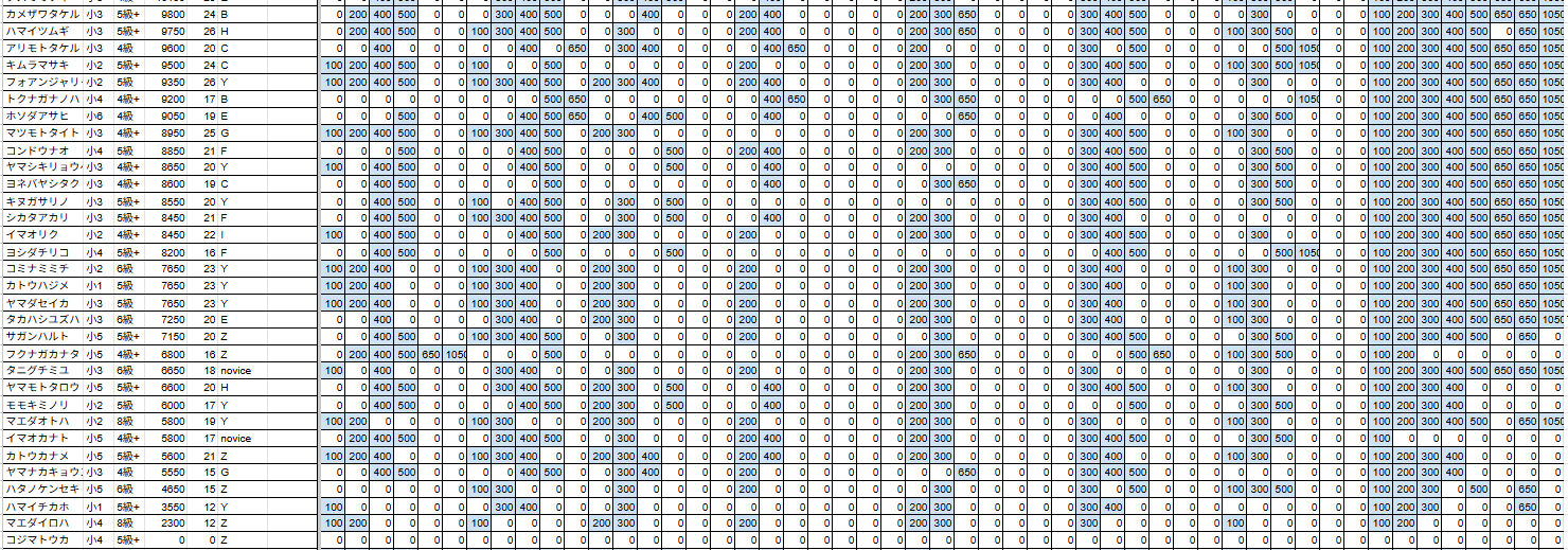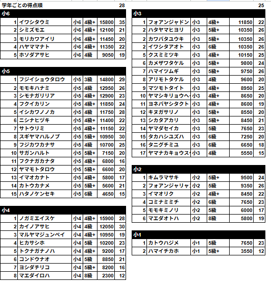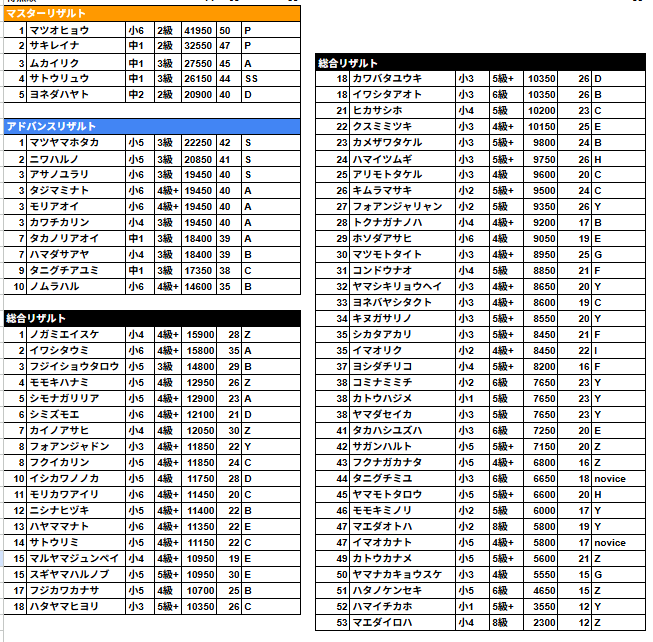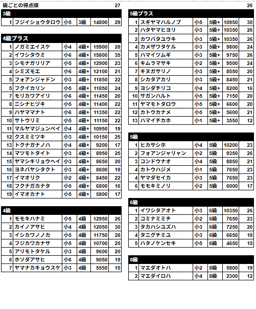 以下学年、グレード、のぼコンランクでの各1位の選手です。