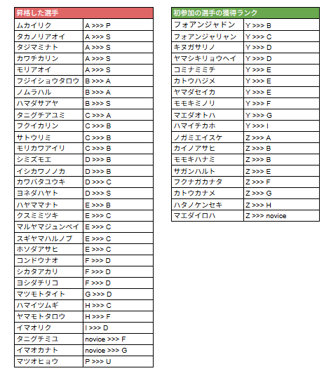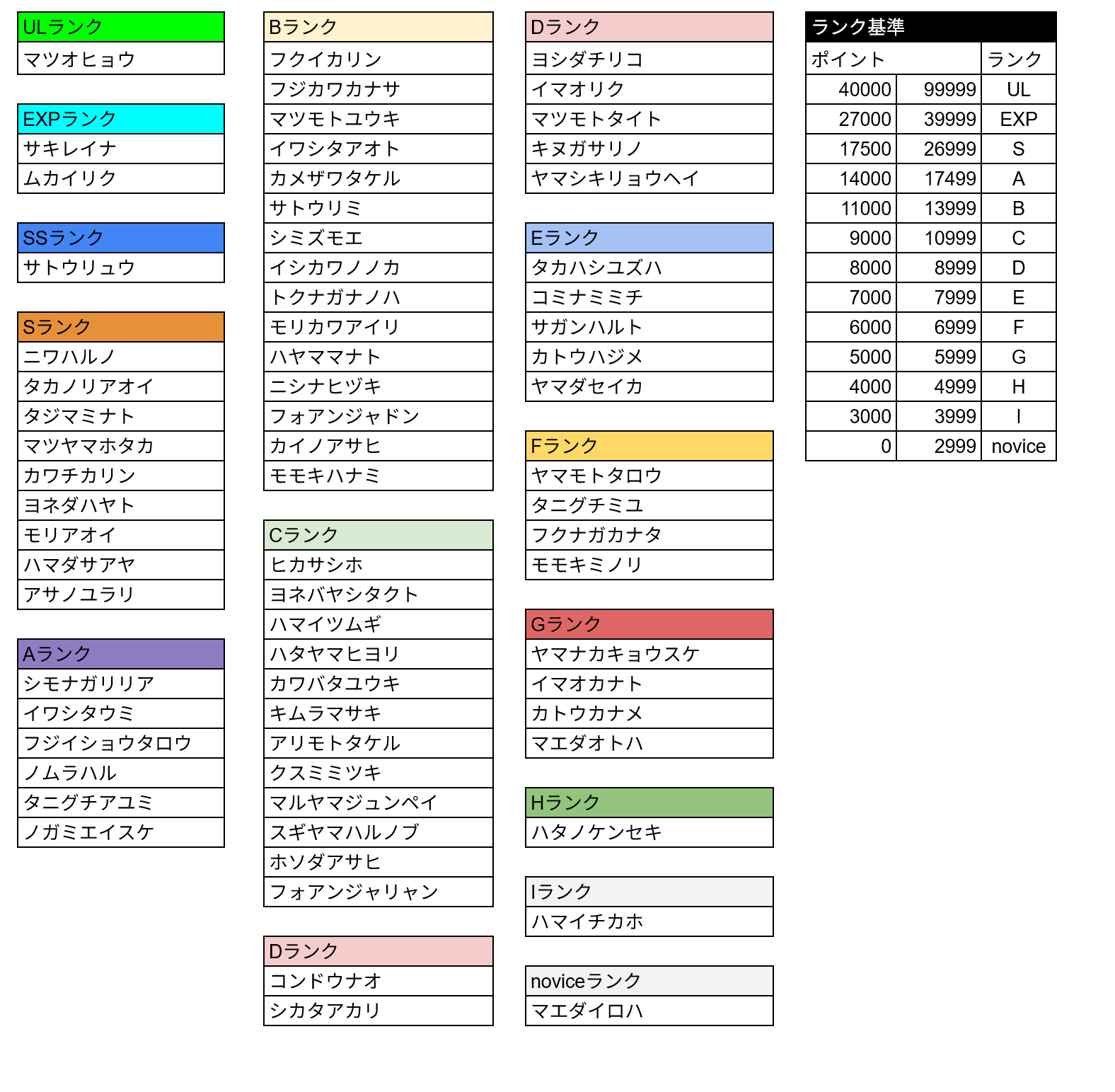 *ランクSS〜Iについては前回大会の結果をもとに認定されるランクです。