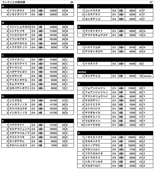 *ランクY のぼコン初参加の小学校3年生以下の選手