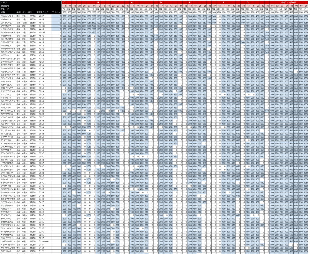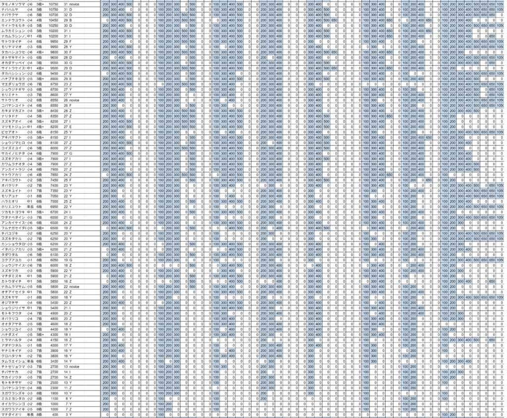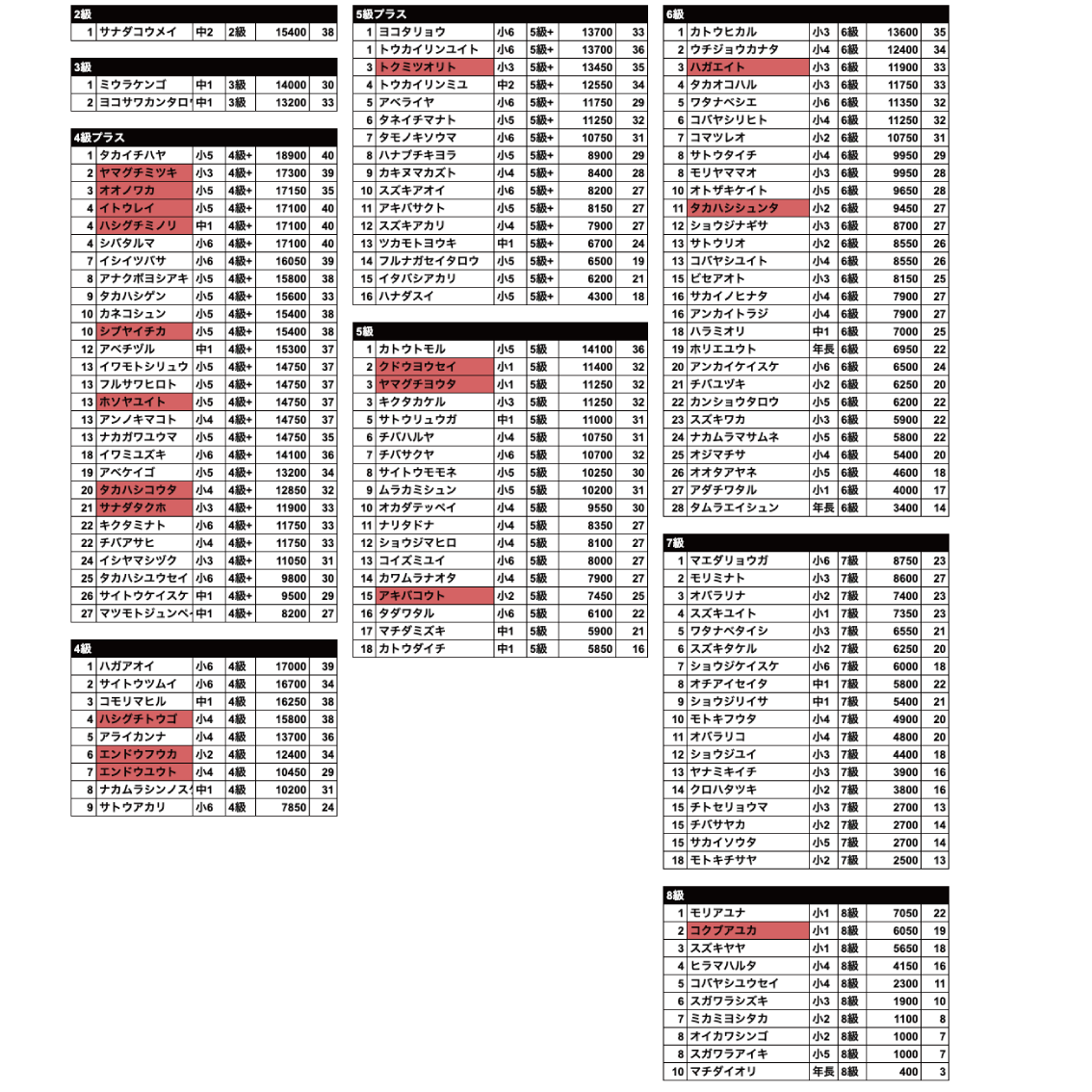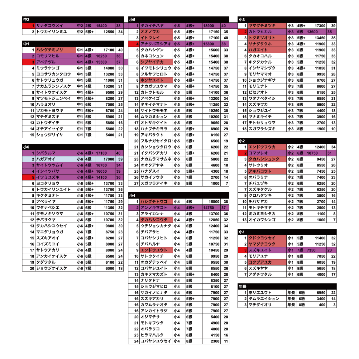 以下学年、のぼコンランク、申告グレードでの各1位の選手です。