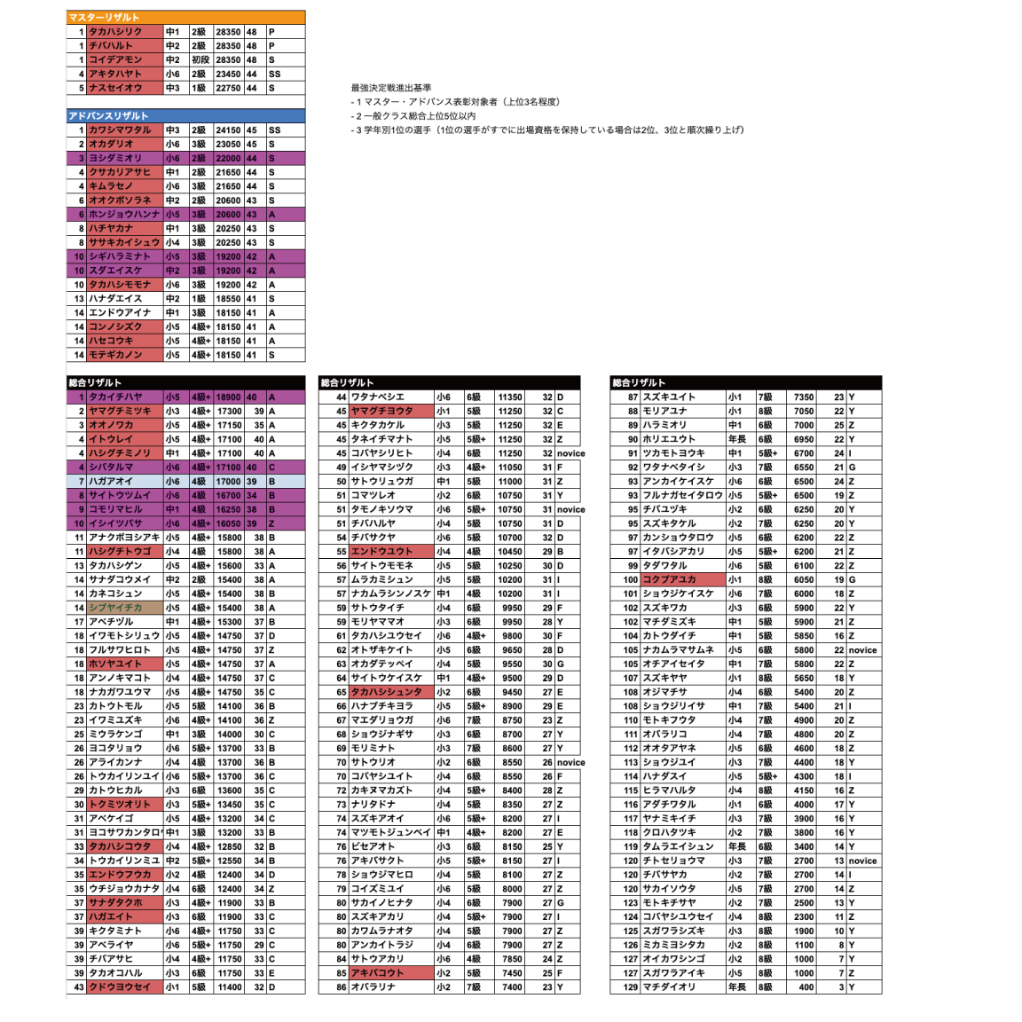 こちらは学年最強決定戦への出場権の関係になります。