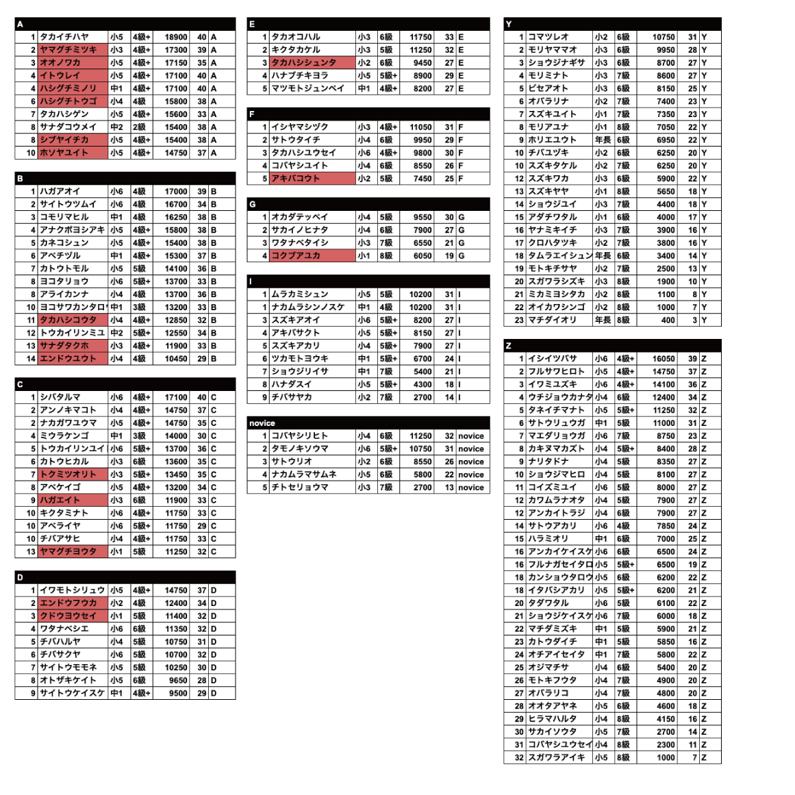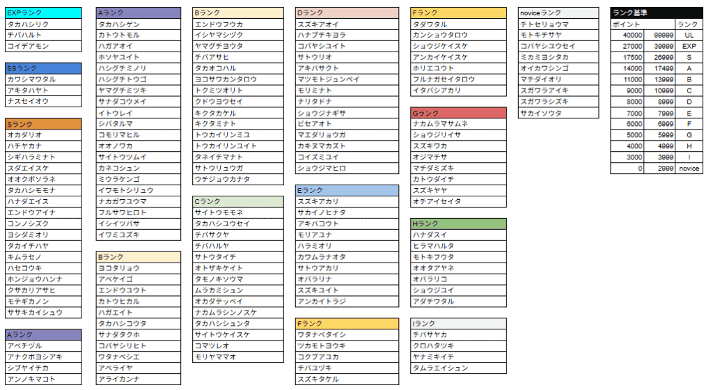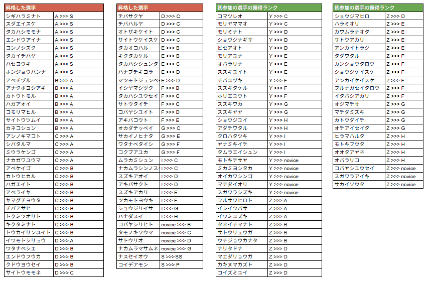 *ランクY、Zについては初参加の方に付与されるランクです。