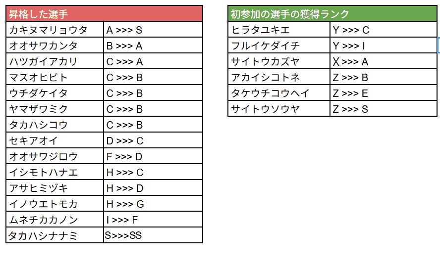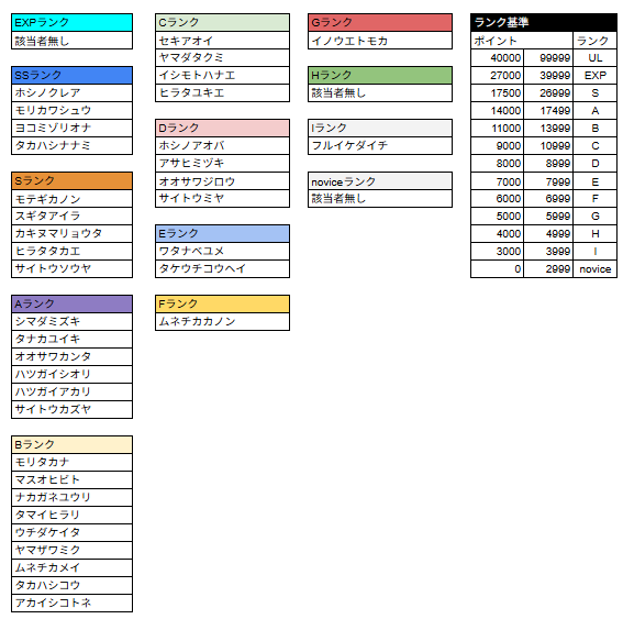 *ランクSS〜Iについては前回大会の結果をもとに認定されるランクです。