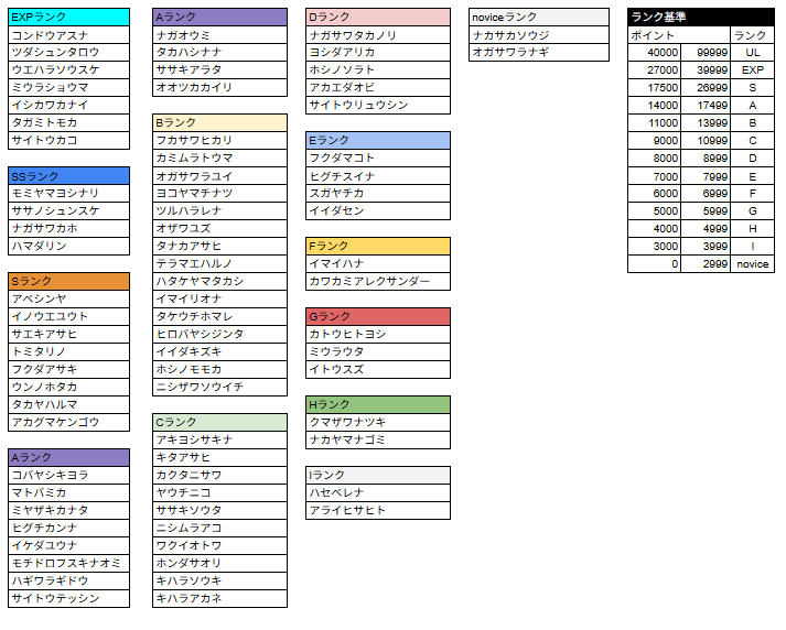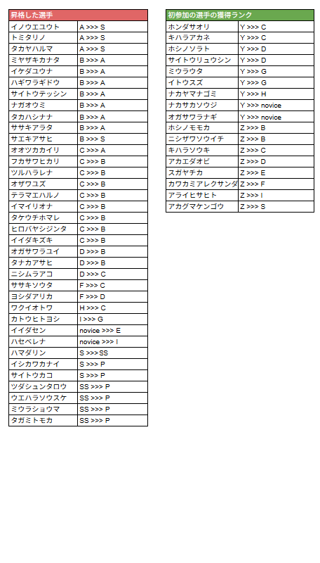*ランクSS〜Iについては前回大会の結果をもとに認定されるランクです。