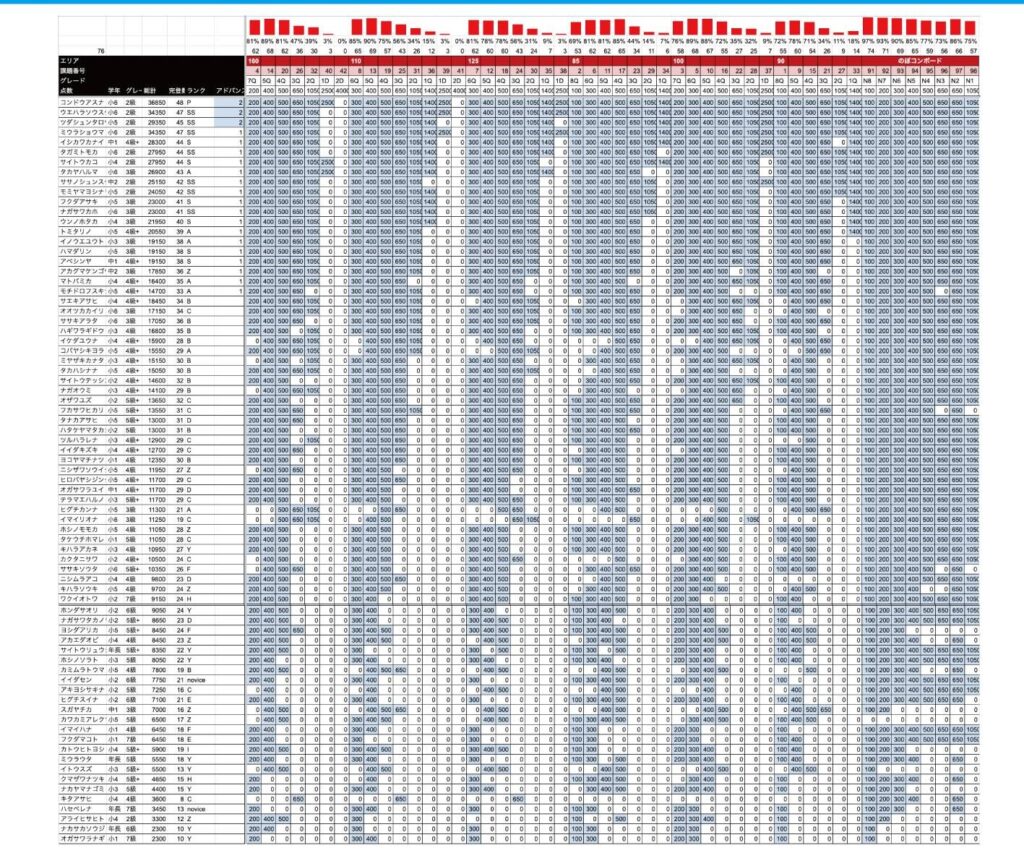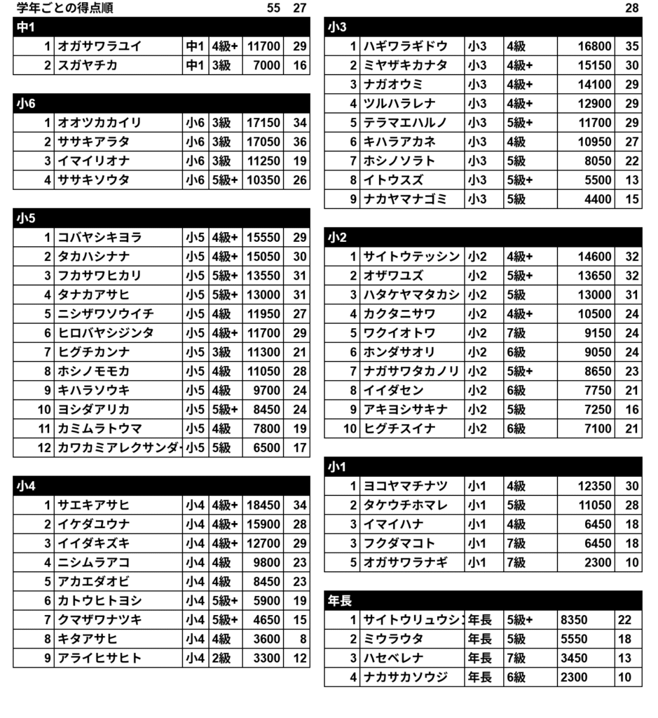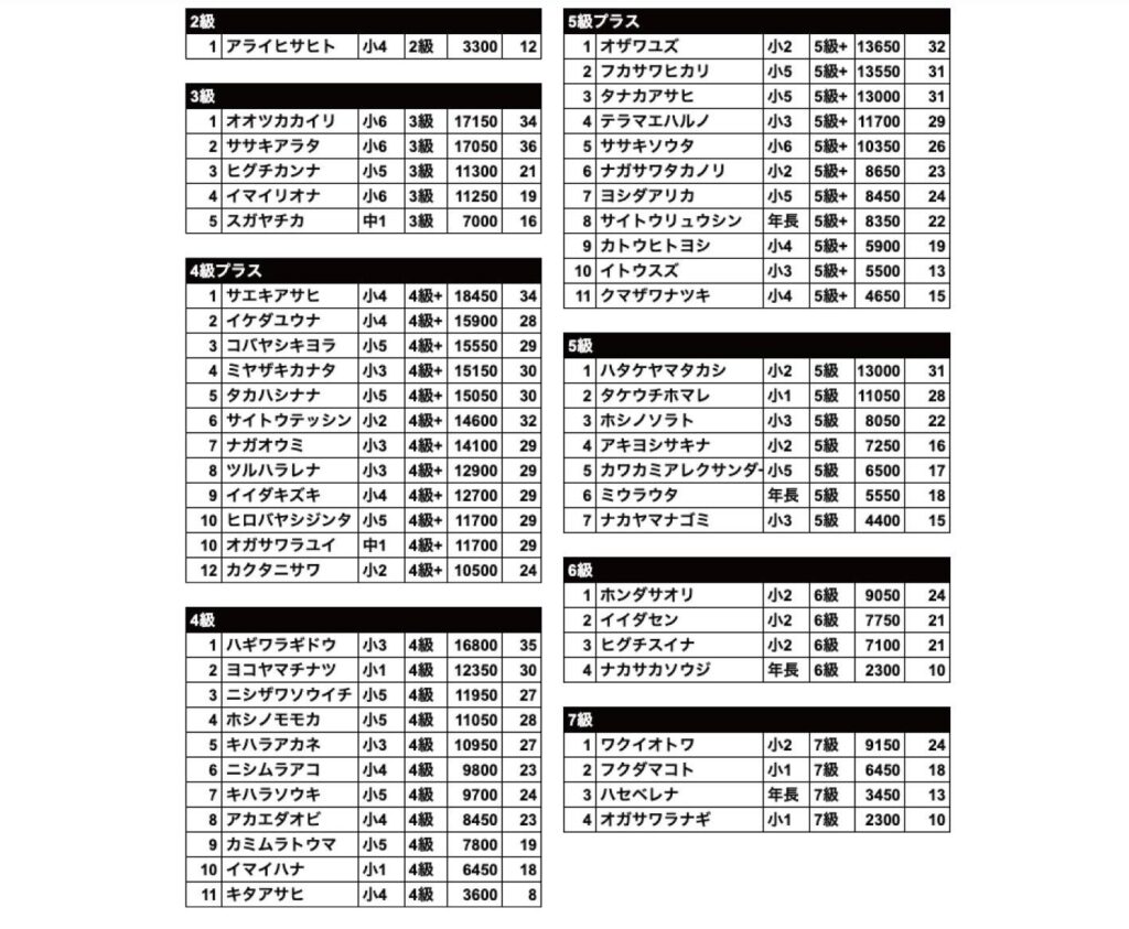 以下学年、グレード、のぼコンランクでの各1位の選手です。
