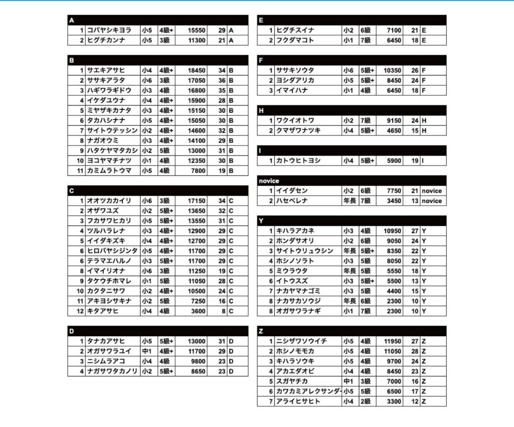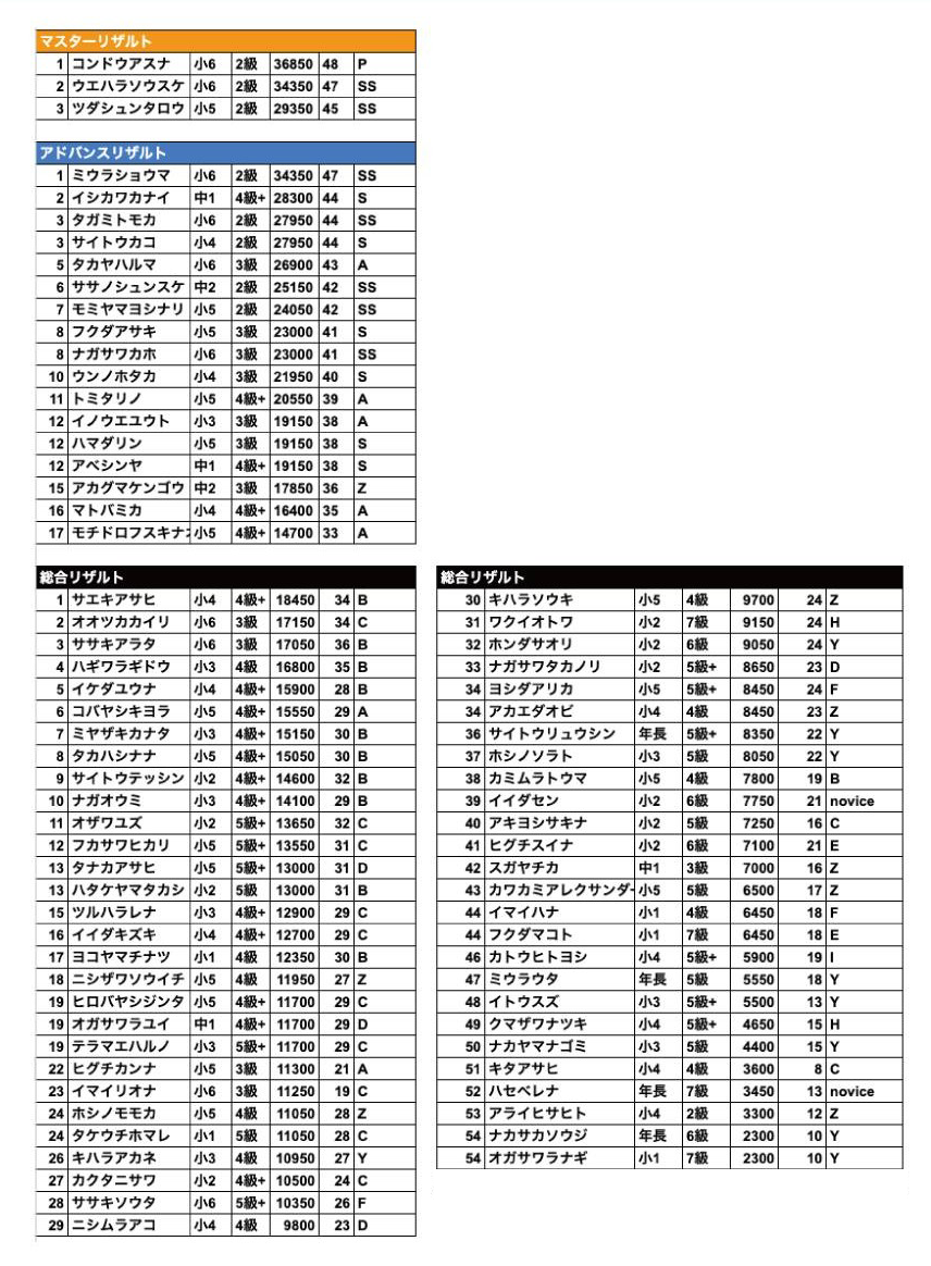 *ランクY のぼコン初参加の小学校3年生以下の選手