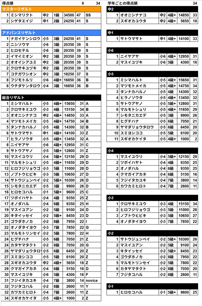 さて、一般クラスの結果発表です!!