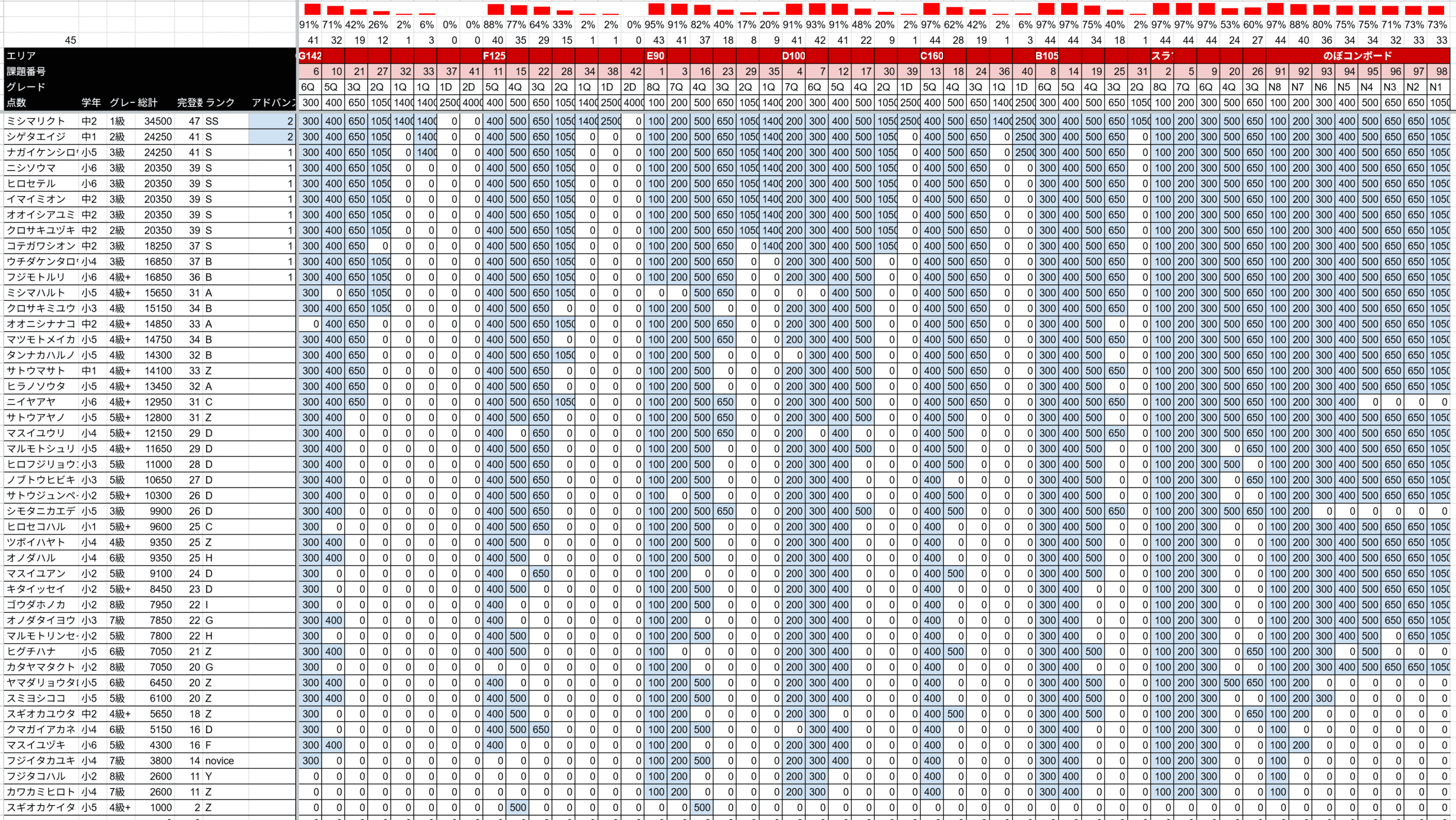 以下学年、グレード、のぼコンランクでの各1位の選手です。