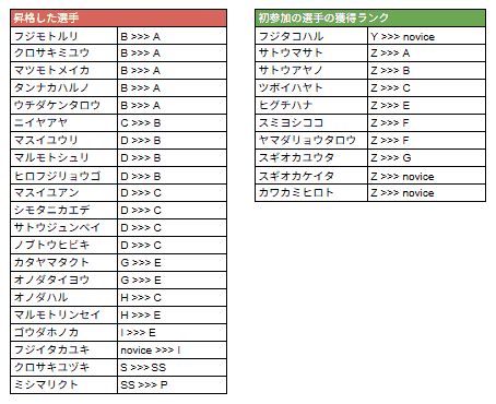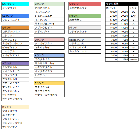 *ランクSS〜Iについては前回大会の結果をもとに認定されるランクです。