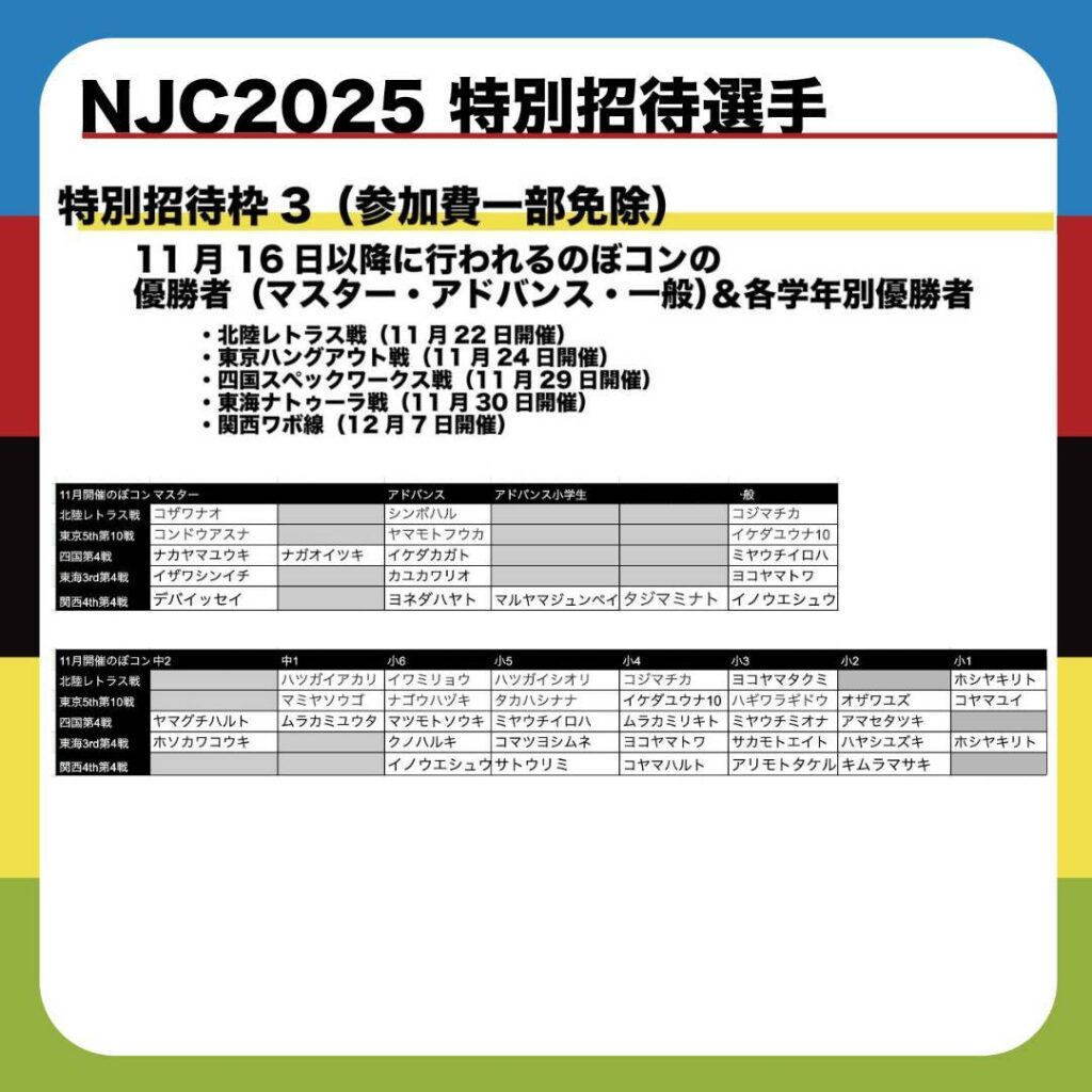 特別招待枠3につきましては各のぼコンのリザルトが確定し次第発表させていただきます。