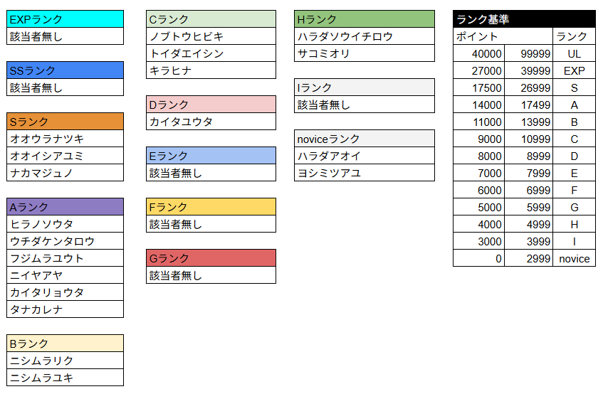 *ランクSS〜Iについては前回大会の結果をもとに認定されるランクです。