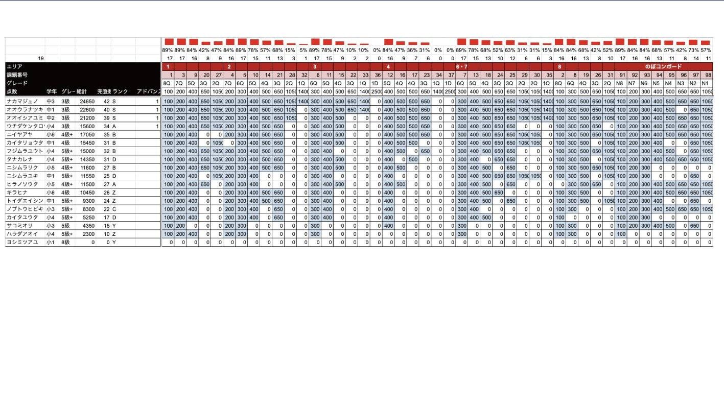 以下学年、グレード、のぼコンランクでの各1位の選手です。