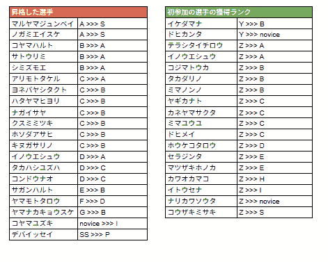 *ランクY、Zについては初参加の方に付与されるランクです。
