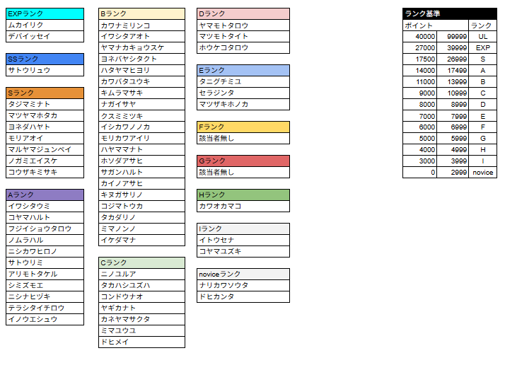 *ランクSS〜Iについては前回大会の結果をもとに認定されるランクです。