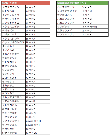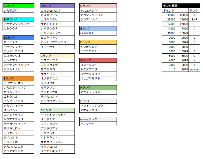 *ランクSS〜Iについては前回大会の結果をもとに認定されるランクです。