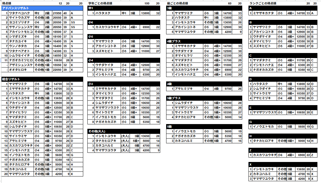 お待たせしました一般クラスの結果発表です!