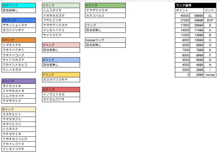 *ランクSS〜Iについては前回大会の結果をもとに認定されるランクです。