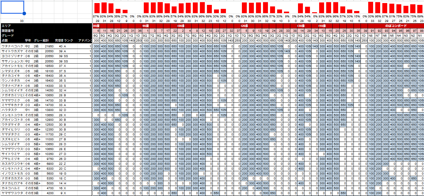 以下学年、グレード、のぼコンランクでの各1位の選手です。