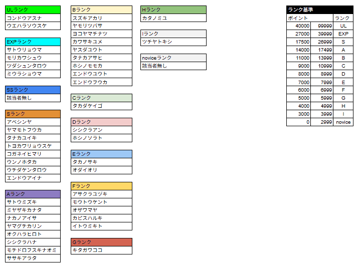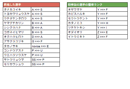 *ランクSS〜Iについては前回大会の結果をもとに認定されるランクです。