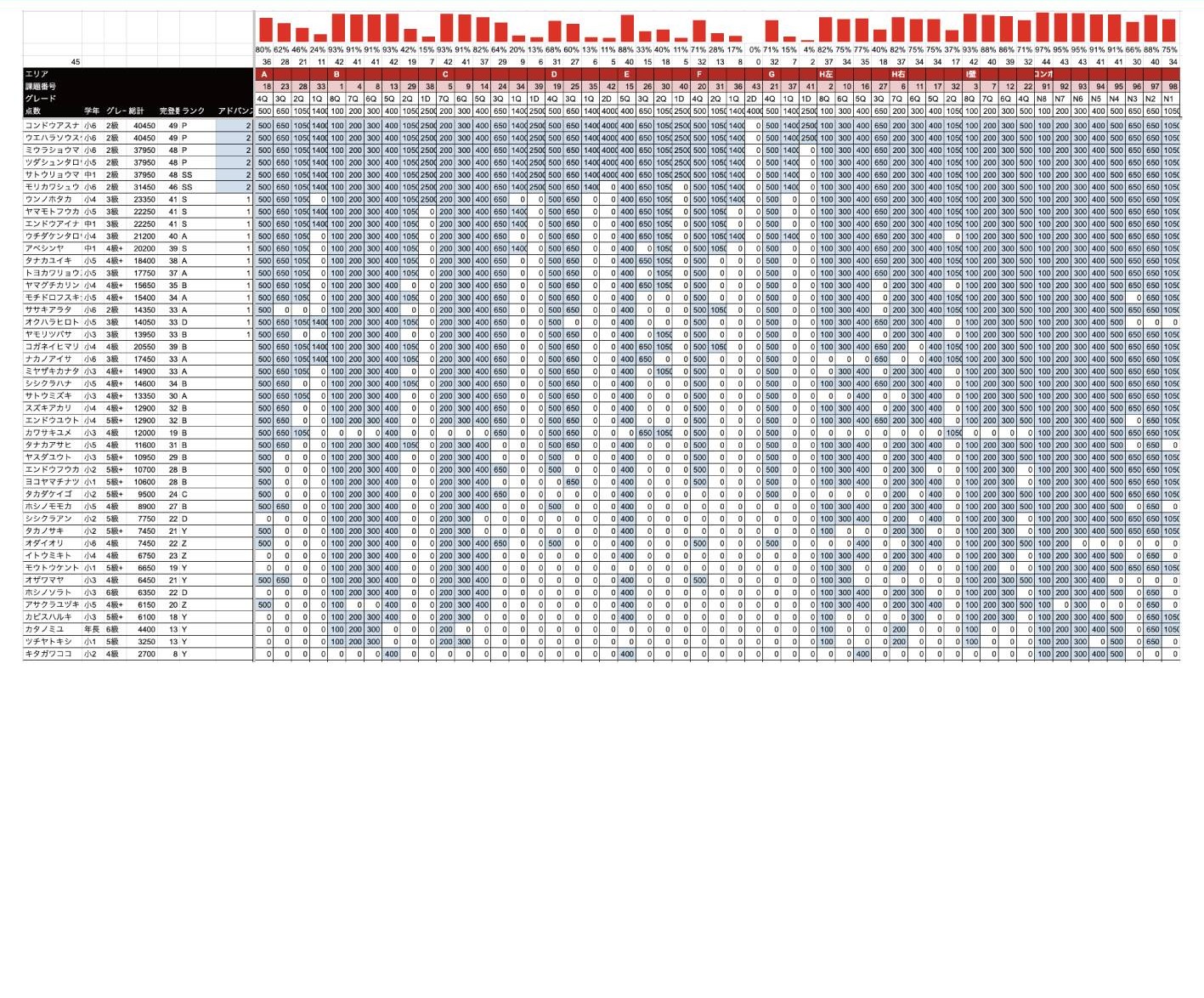 以下学年、グレード、のぼコンランクでの各1位の選手です。
