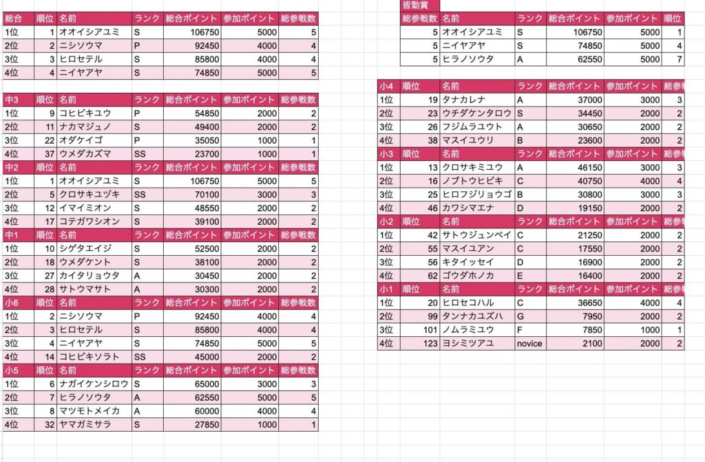 参加してくださった選手の皆さん、保護者の皆さん、開催にご協力いただいたジムの皆さん、協賛してくださっている皆さん、セッター陣、スタッフの皆さん、ジャッジの皆さん、カメラマンの皆さん、そしていつも支えてくれている家族に、この場を借りて御礼申し上げます。