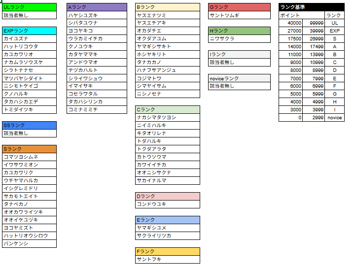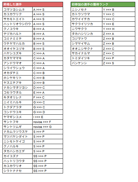 *ランクSS〜Iについては前回大会の結果をもとに認定されるランクです。
