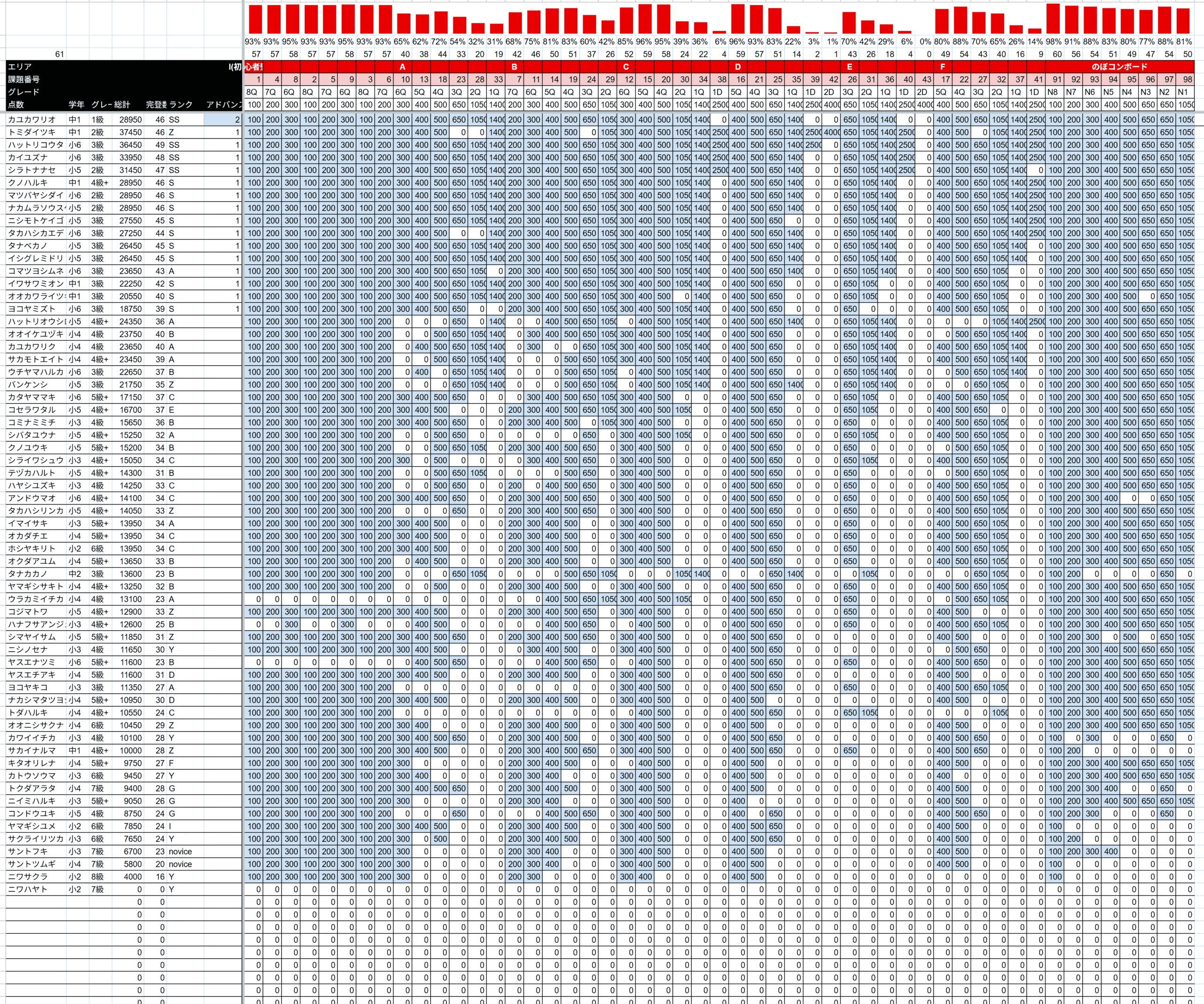 以下学年、グレード、のぼコンランクでの各1位の選手です。