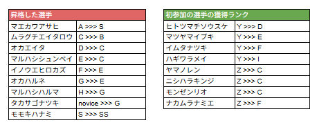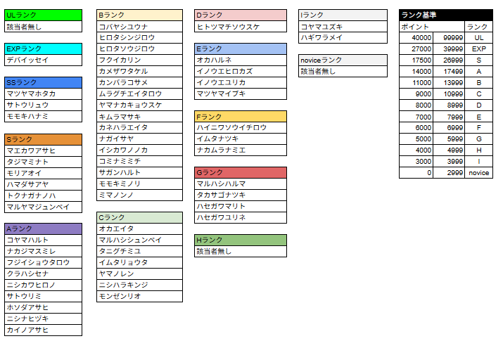 *ランクSS〜Iについては前回大会の結果をもとに認定されるランクです。